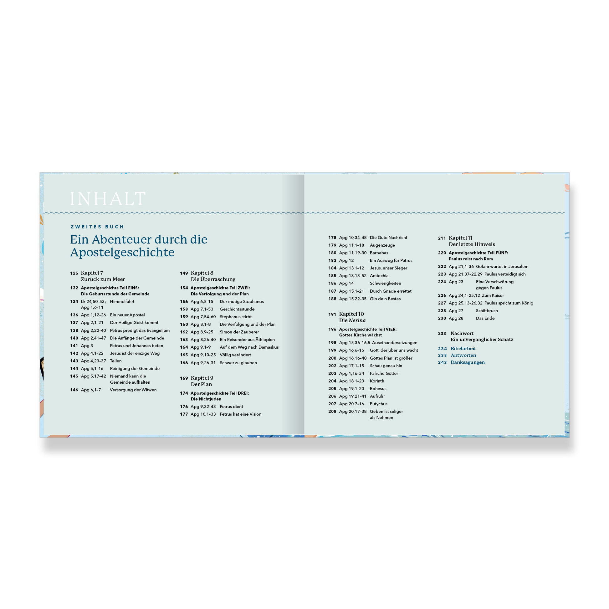 Obwohl diese beiden Bibelbücher oft als getrennte Erzählungen betrachtet werden, bilden sie zwei Hälften einer großen Geschichte. Lukas erzählt, wie Jesus auf dieser Erde wirkte und der Heilige Geist in seiner Kirche. So stellt er dem Leser die unermessliche Liebe des Vaters vor Augen. Der verborgene Schatz hilft Kindern, mehr davon zu verstehen und in ihrer Liebe zu Gott zu wachsen.